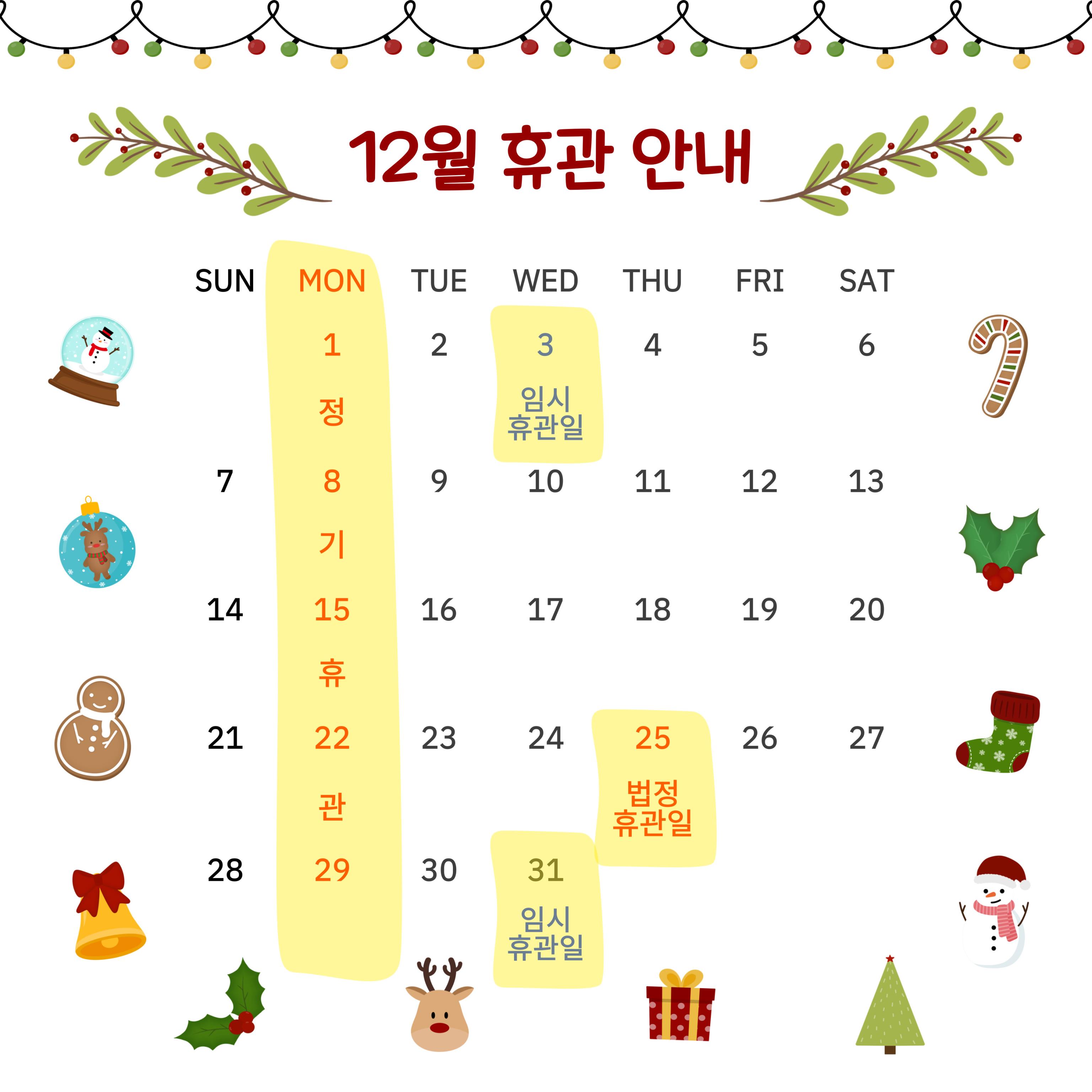 12월 휴관안내