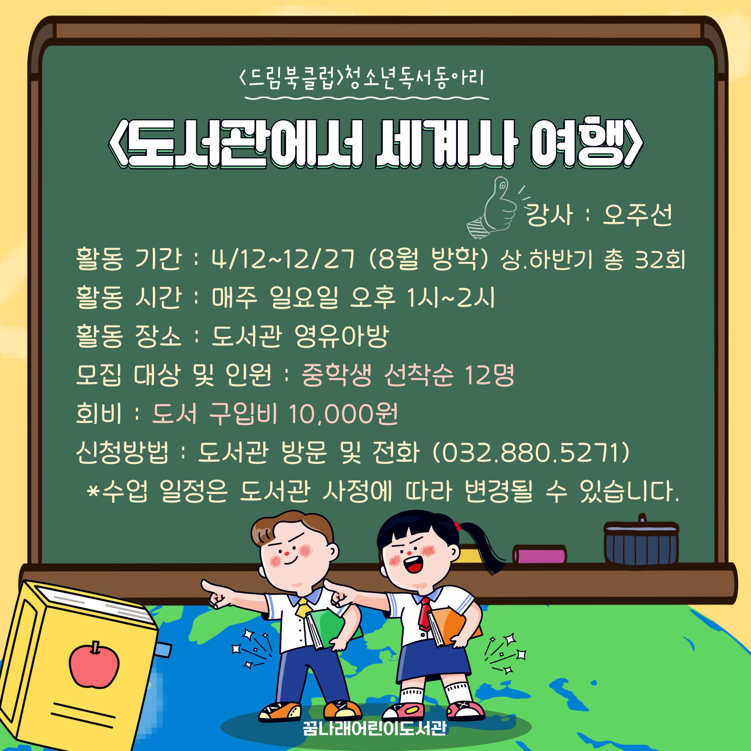 2026년 드림북클럽 청소년 독서동아리 회원 모집 (도서관에서 세계사 여행)