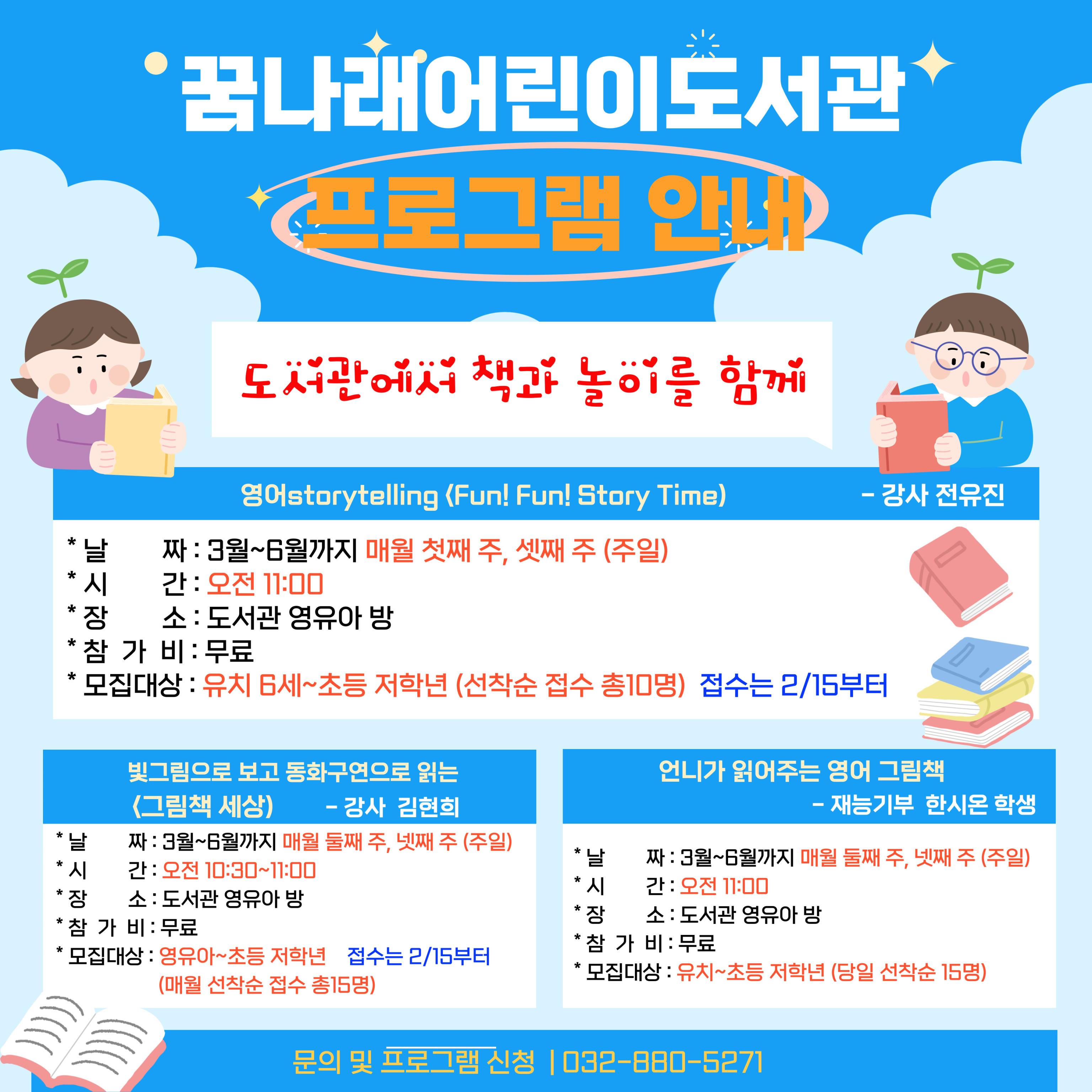 -<영어storytelling><그림책 세상> 참여신청은 2/15(주일)부터 접수 받습니다.